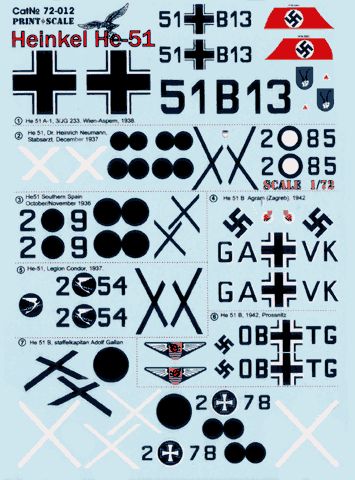 Декаль PrintScale 1/72 «Heinkel» «He-51"