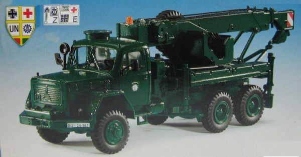 "Magirus Deutz mit Bilstein Bergekran BGS " - Автокран, цвет зеленый . Сборная модель, размер 11 x 2.8 x 4 cm, масштаб 1/87. цветной пластик.
