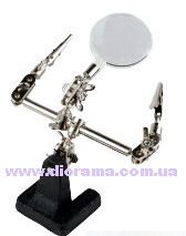 Приспособление для сборки из серии "helping hands" (помощник рукам) - Держатель. Линза пластмассовая с увеличением x2.5. Вес изделия 486 г